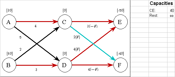 each arc the resulting incremental flow (in parentheses) and the cost per