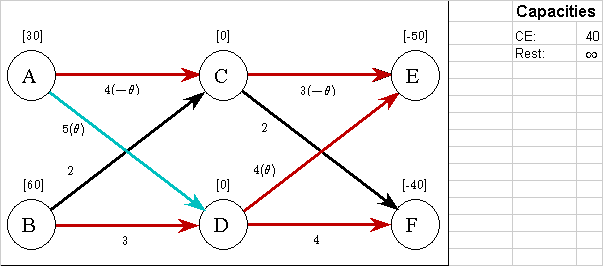 each arc the resulting incremental flow (in parentheses) and the cost per