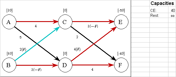 each arc the resulting incremental flow (in parentheses) and the cost per