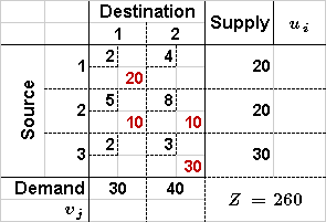 Let's use this basic feasible solution to initiate the transportation simplex method. To find