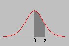 As shown in the illustration below, the values inside the given table represent the areas under the standard normal curve for values between 0 and the relative z-score. For example, to determine the area under the curve between 0 and 2.36, look in the intersecting cell for the row labeled 2.30 and the column labeld 0.06. The area under the curve is .4909. To determine the area between 0 and a negative value, look in the intersecting cell of the row and column which sums to the absolute value of the number in question. For example, the area under the curve between -1.3 and 0 is equal to the area under the curve between 1.3 and 0, so look at the cell on the 1.3 row and the 0.00 column (the area is 0.4032).