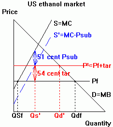 54-cent-a-gallon tariff on ethanol imported from Brazil." Promotes production: yes Promotes use: no; consumption falls |